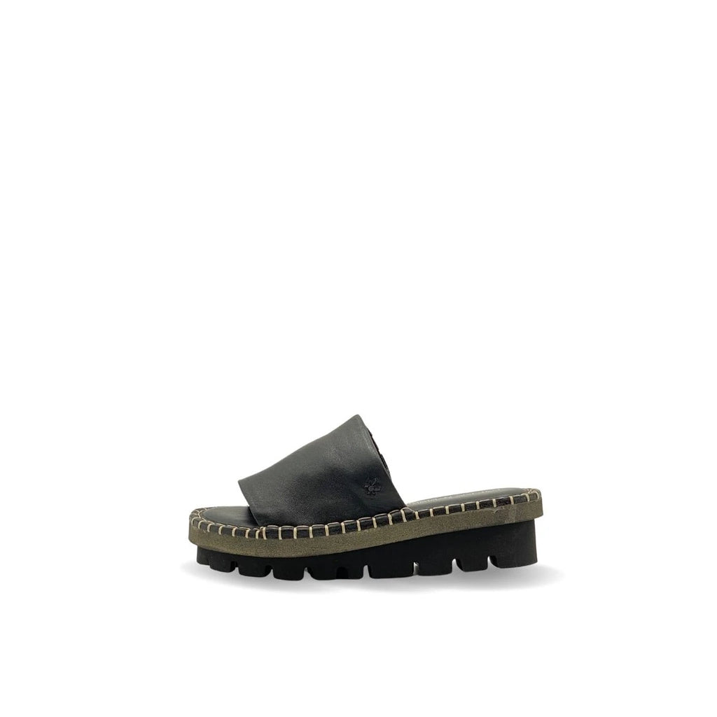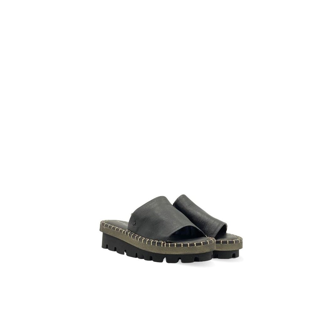 Mayumi sandal in black leather. Slight platform for comfort and style