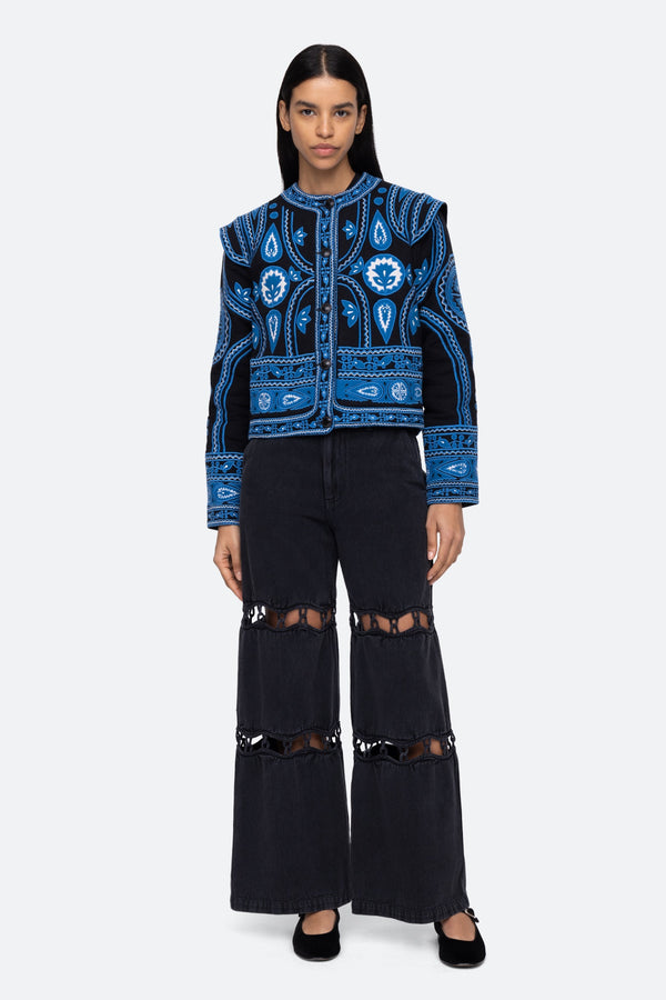 Picture airy lace-trimmed dresses, bold embroidery on relaxed button-downs, or dreamy knits with patchwork charm. Sea NY pieces blend vintage touches with contemporary ease—pieces that travel effortlessly from brunch to evening plans without skipping a beat. The brand’s commitment to craftsmanship shines in every stitch: heirloom-style embroidery, layered textures, and thoughtfully proportioned silhouettes that feel both personal and polished.