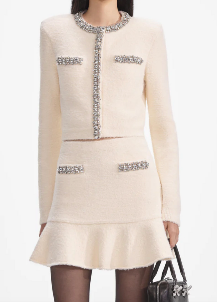 From bustling family feasts to polished holiday parties, this embellished cardigan, crafted from super soft knit, will help you celebrate in style. Match its shine with our statement earrings.