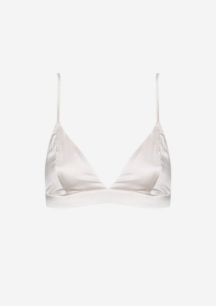Silk spaghetti strap bralette with triangle cups. S-hook closure on back