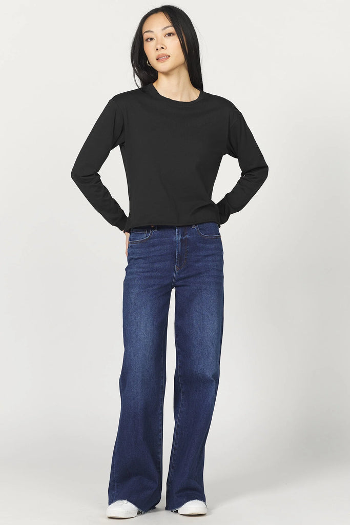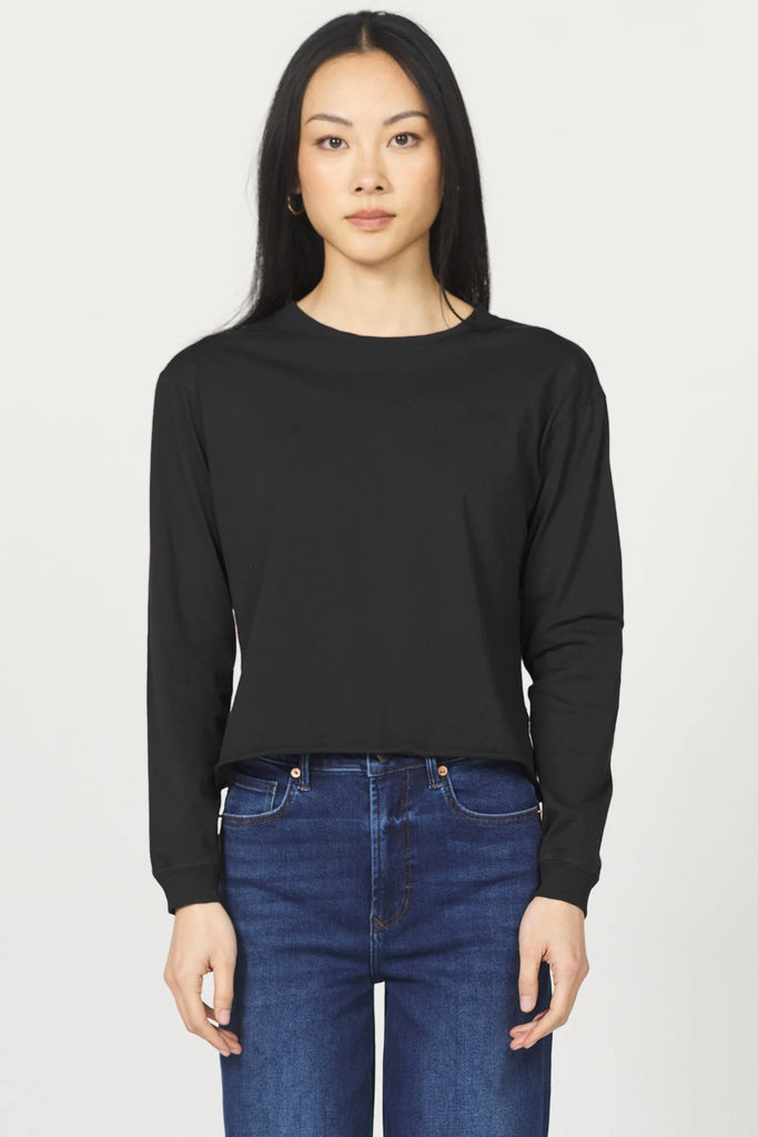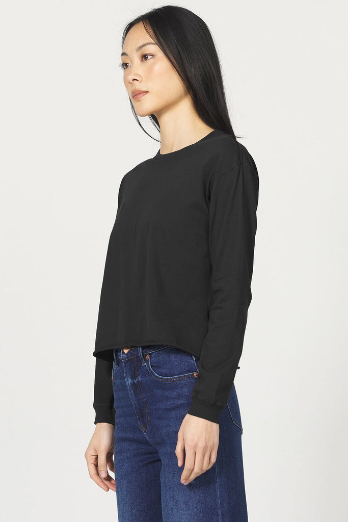 Featuring a chic crew neck and raw edge detailing, this top effortlessly combines timeless elegance with a modern twist, providing a go-to option for comfort for an elevated everyday look.