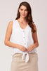 A cute sleeveless, bra-friendly top which features a button-down v-neckline with a front tie, a square high-low back hem.