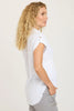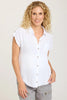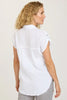 Tabbed short sleeves, a rounded high-low raw-edge hem, and classic collar with button-up closure make up the Naresha Tunic. Wear open over a tank or on its own!