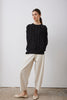 Ecru perkins neck sweater completely fullyfashion. Made with a long cotton fiber and super fine high-quality yarn knitted in 16 gauge. The body is knitted with a gathering structure directly from the machine that gives perso- nality to the piece.