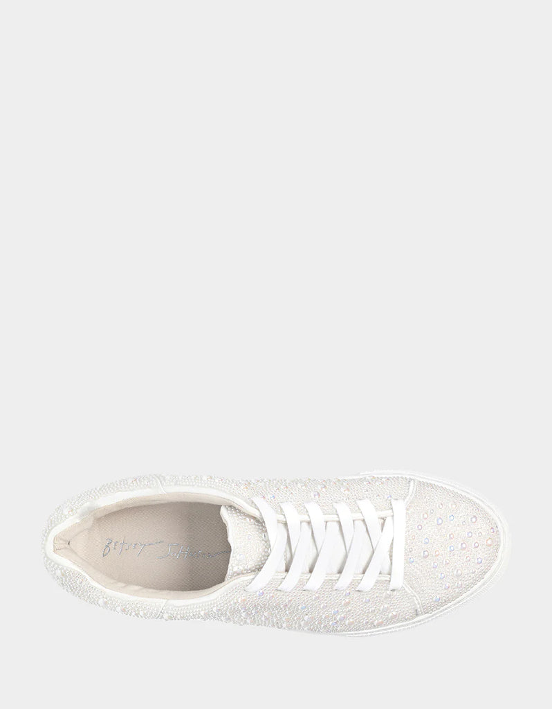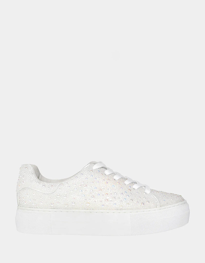 Put a little sparkle in your step with the Sidny all-over rhinestone and pearl sneakers. This sneaker can be paired with your best dress or favorite jean!