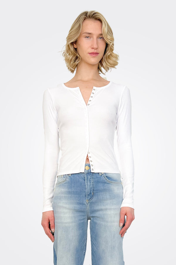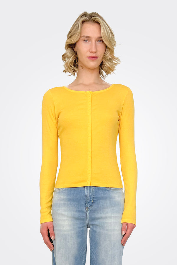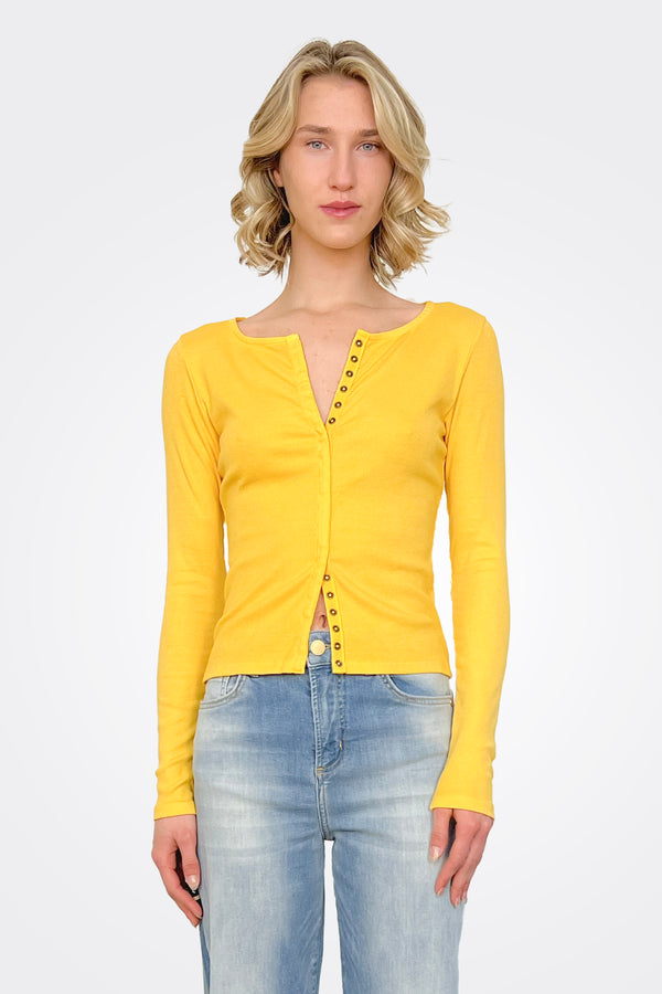 Rib Long Sleeve Snap Front Cardigan - Dandelion
