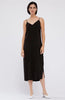 Cupro slip dress. Made from soft and silky cupro. Designed with a v-neckline in the front and back and a split hem. Available in black. Made in the States.