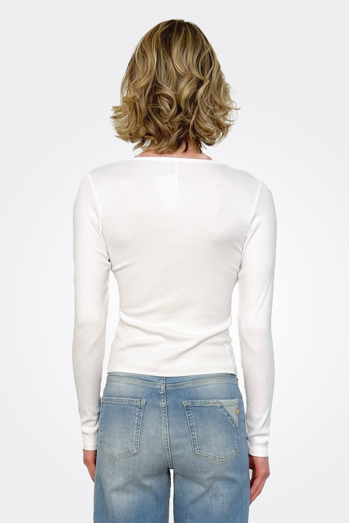 2X1 Rib Knit is made from a blend of 47% Supima Cotton, 47% Micro Modal and 6% Spandex. The blend allows our knits to hold their shape while seamlessly offering an unparalleled fit, one that is both flattering and comfortable. This textured stretch rib knit is complete with Stateside signature stitch detail.