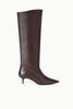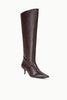 The Sebastian Kitten Heel Boot is a nappa leather, knee-high boot with a pointy toe. They can be worn casually or dressed up for a night out.