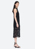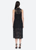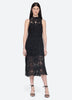 The Branca battenburg lace dress features a high ruffle neckline, intricate lace detailing throughout and scalloped hemline.