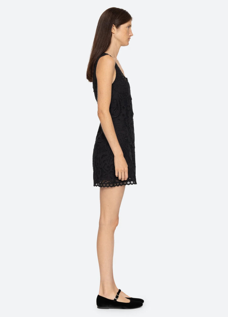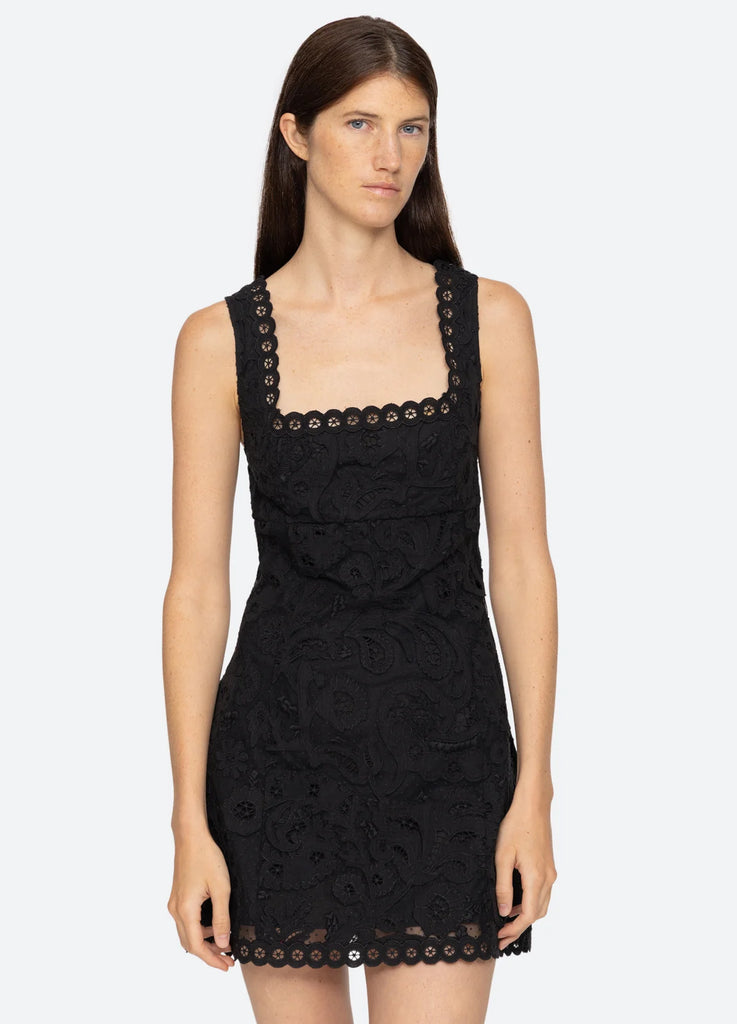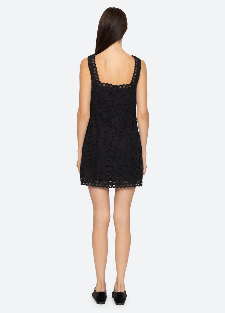The Lovina embroidered lace dress features delicate embroidered lace, eyelet trim and mini silhouette.