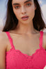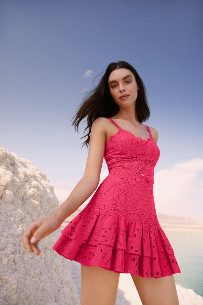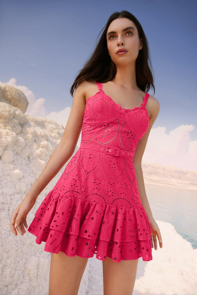 The hourglass silhouette is the main feature of our mini Marianne dress. The sweetheart neckline and the slim straps support the fitted bodice highlighting the beauty of the chest and shoulders. An embroidered cotton belt accentuates the narrowest point of your waist before falling into a pretty fluted skirt. This is the “Little Summer Dress” that needs to be in your suitcase!