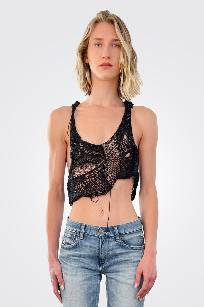 Expertly hand-knitted asymmetric minicropped top.