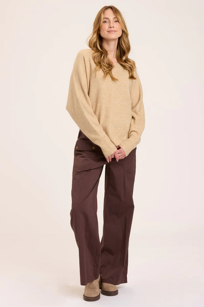 Oh Gretchen! Don't you look amazingly comfy! A ribbed high low rounded hem with a dolman sleeve and ribbed cuffs really makes Gretchen stand out.