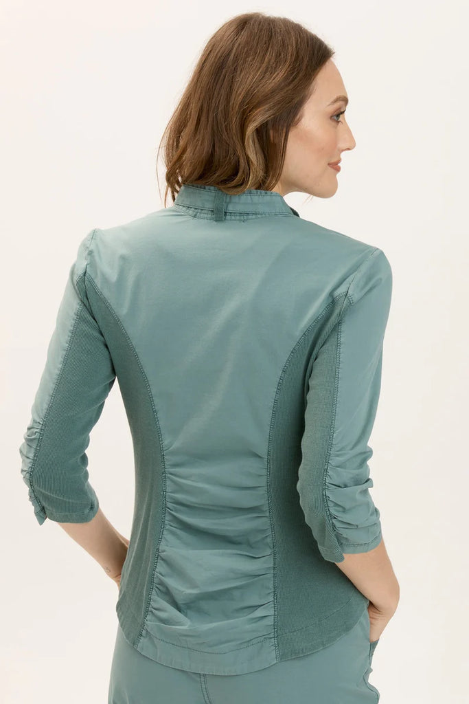 She’s back! A stylish, elevated, track jacket-inspired piece of lightweight outerwear, Janet is all for you! Featuring a stand collar with button details, rib inserts at the sides and at the 3/4 sleeves for an impeccable and comfortable fit, twill details at the zipper front, two front in-seam pockets, and ruching on the sleeves and back, Janet is as full of details as she is life!