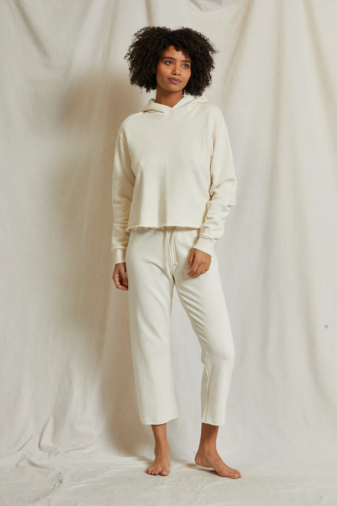made from our new lightweight fleece called beach fleece. this hoodie is super soft and roomy enough to be comfortable. the perfect fit, with a cut off raw hem at the bottom. throw it on over a day at the beach for cool summer nights.