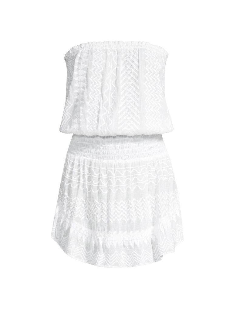 Ramy Brook's Sallie cover-up dress is crafted of cotton, showcasing a strapless neck, smocked waistband, and tonal embroidery.