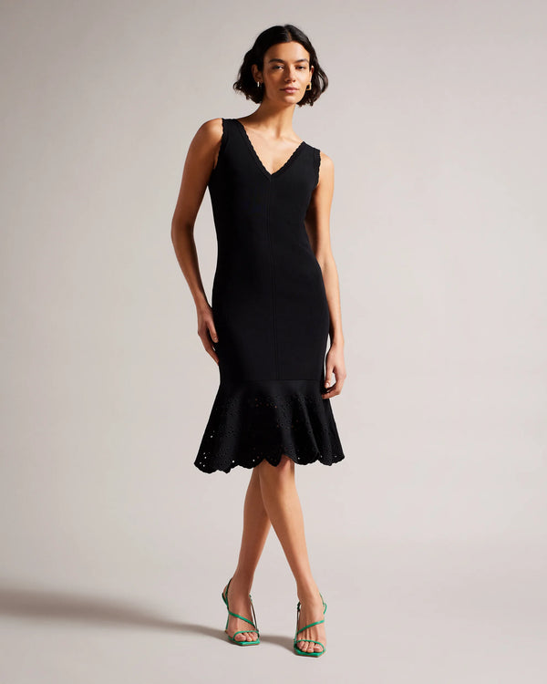 Juliann Broderie Stitch Midi Knit Dress - Black