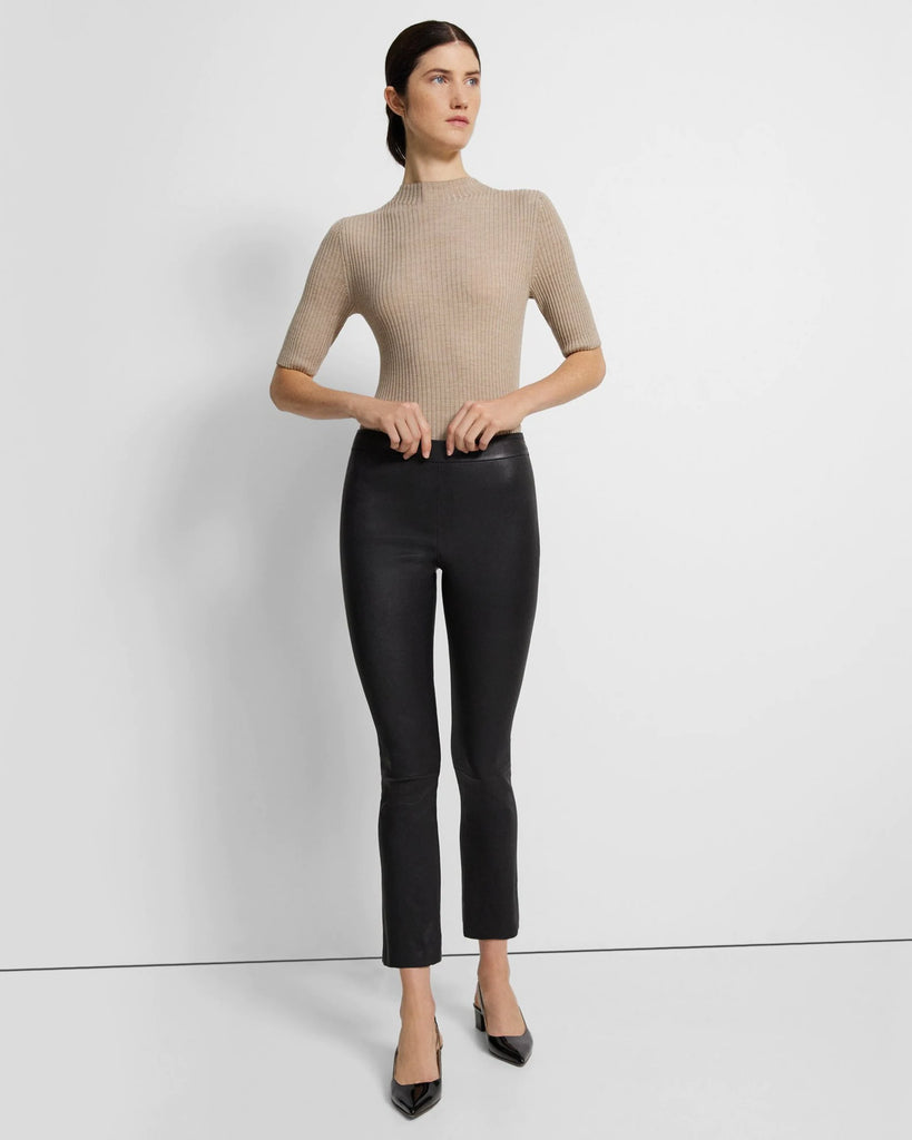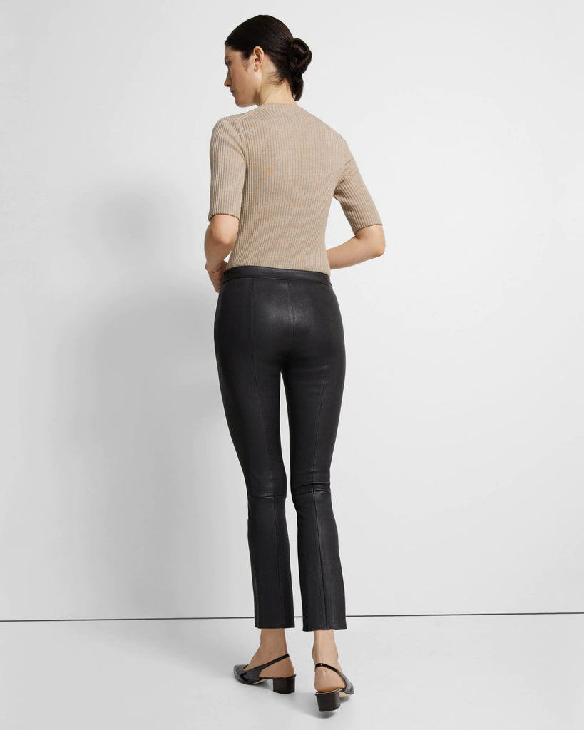 Retaining a refined finish, our signature pant is cropped for a slimmer flared fit. Finished with a side zip closure, this high-rise style is crafted from our ultra smooth leather.