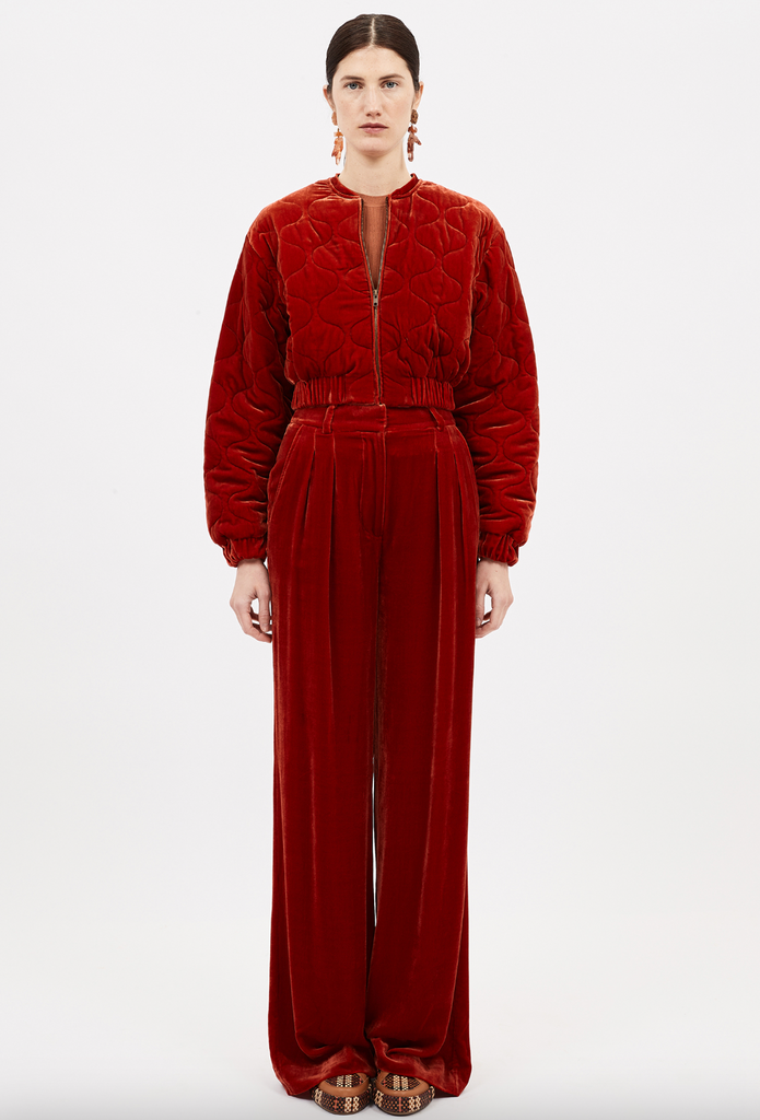 Adair Velvet Quilted Jacket - Carnelian