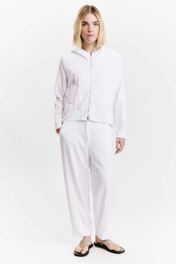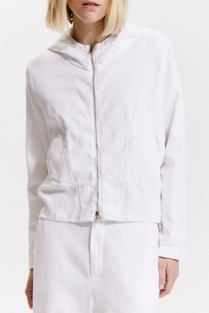 Comfort-fit stretch lyocell and cotton blend hoodie, with a linen trim on the hem and part of the hood. Fastened with a zip. Two welt pockets at the front. Garment dyed. | 1014.CFDTRZQ264.00
