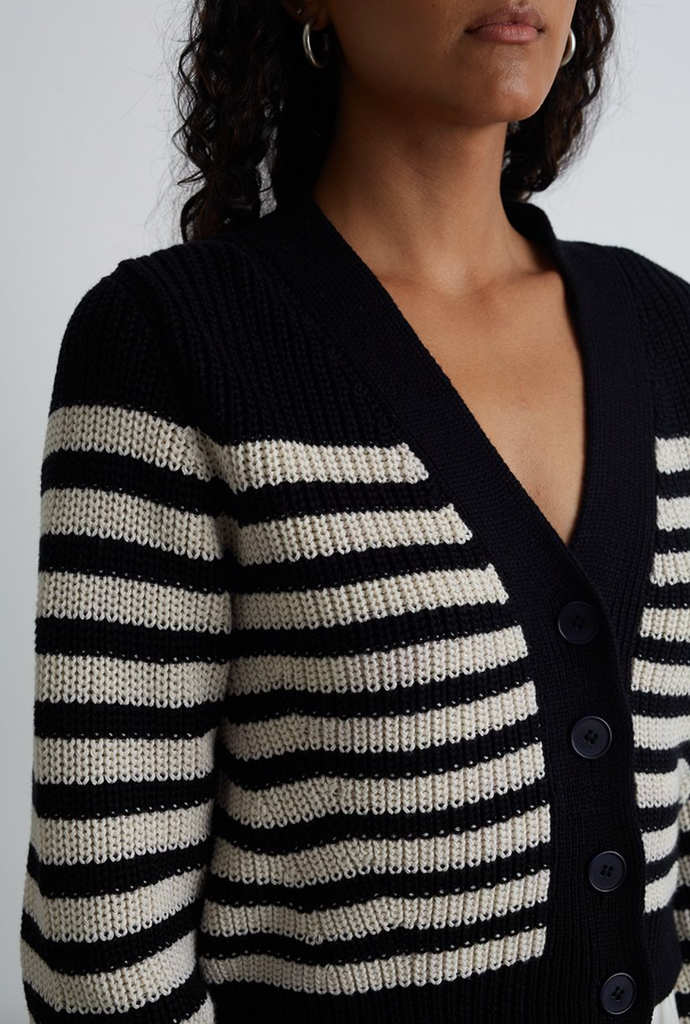 Isla Cardigan - Navy Ivory Stripe