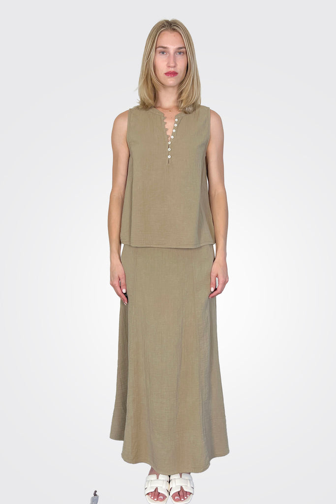 Model measurements: Height: 5'10", 33" bust, 25" waist, 35" hips, wearing a size small
