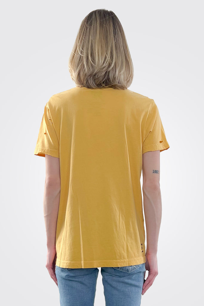 - 100% Cotton- Unisex Destroyed Cut T-Shirt, Pigment Sunset Gold Color, - Officially Licensed David Bowie Apparel