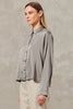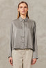 Long Sleeve Stretch Silk Satin Shirt - Grey