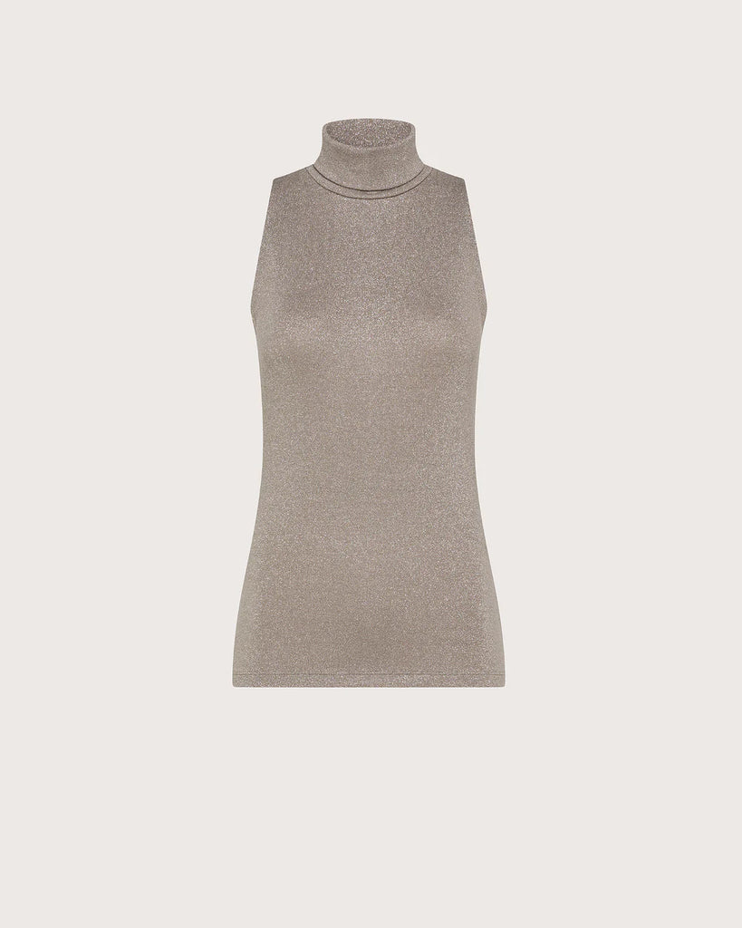 Lurex Sleeveless Turtleneck - Dove Grey