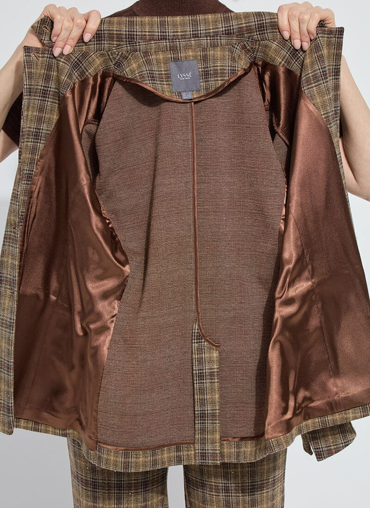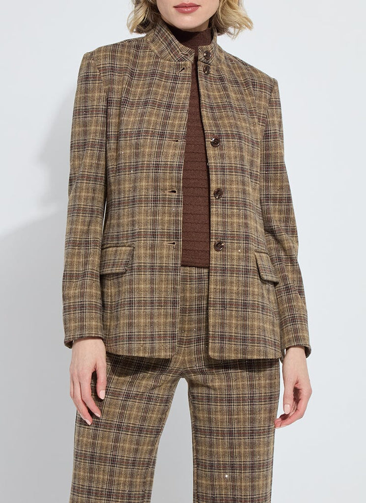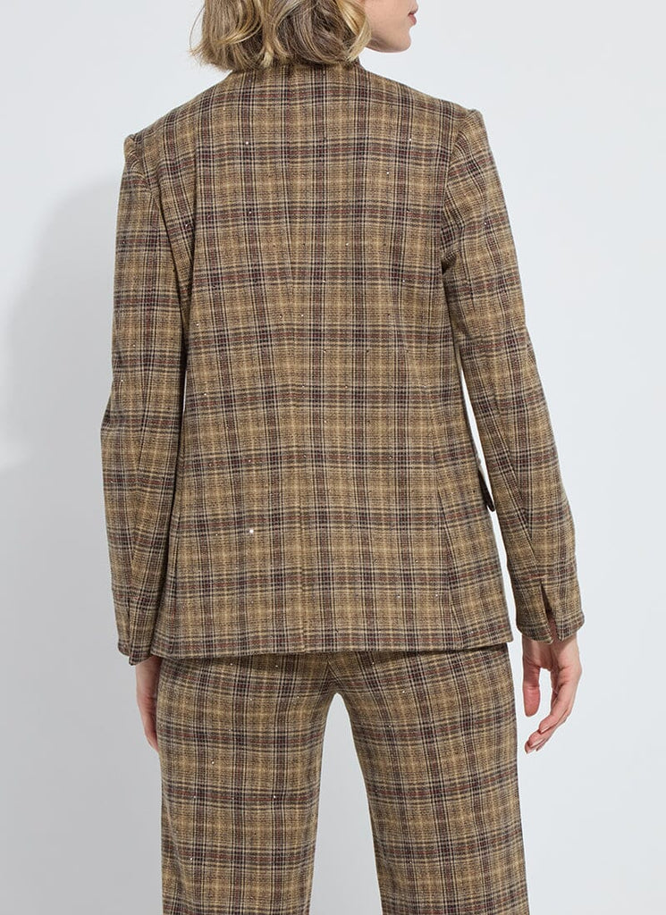 The British-inspired Marceline Convertible Collar Blazer, made from 4-way stretch Brushed Ponte Jacquard, showcases a discrete, Copper Rhinestone Crystal application for a festive, feminine look. Offering a convertible collar that can be worn up or folded down like a classic blazer collar, this flexible jacket features functional front pockets and back vent. Half lined in Stretch Satin with binding inside, we love the Marceline Convertible Collar Blazer belted over the Felicity Fringe Wide Leg Denim Trouser or styled as a suit with the matching Marceline Crystal Embellished Crop Pant. Turn inside out to machine wash.