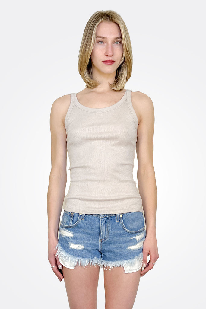 Bringing something special to your everyday tank. Crafted in our timeless, signature Shine fabric, this tank features a body sculpting fit with a scoop neckline. Dress this favorite up or down with denim, a satin skirt or your favorite lounge pants.