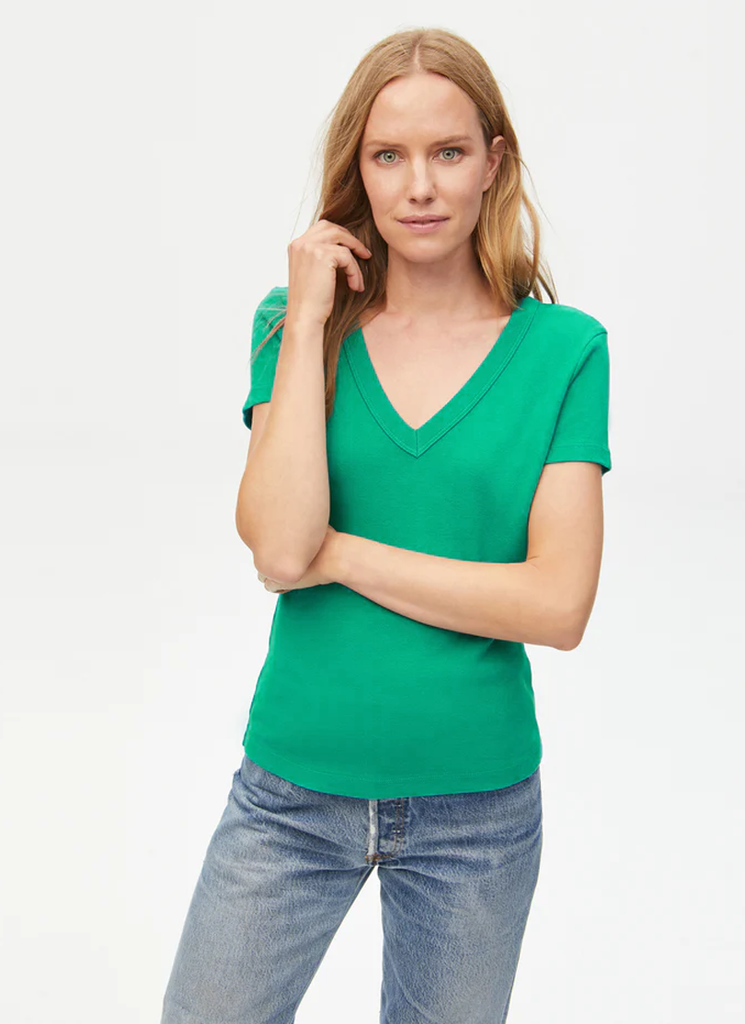 Basic but never boring, Nikki Tee is made in LA from 100% cotton. Its wide, V-neck and hip-length cut make it a must-add for your spring wardrobe.