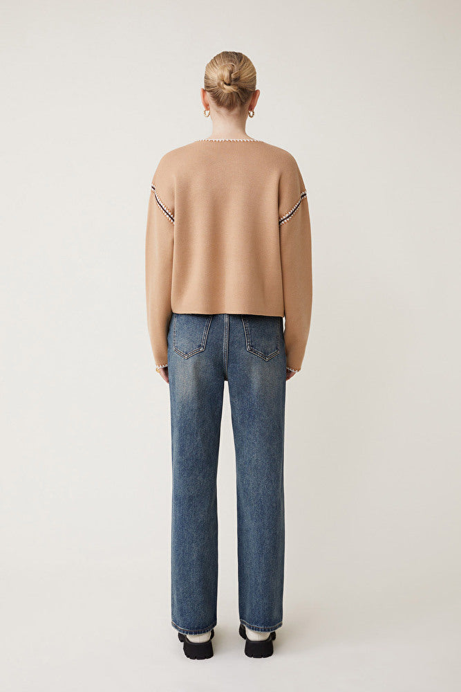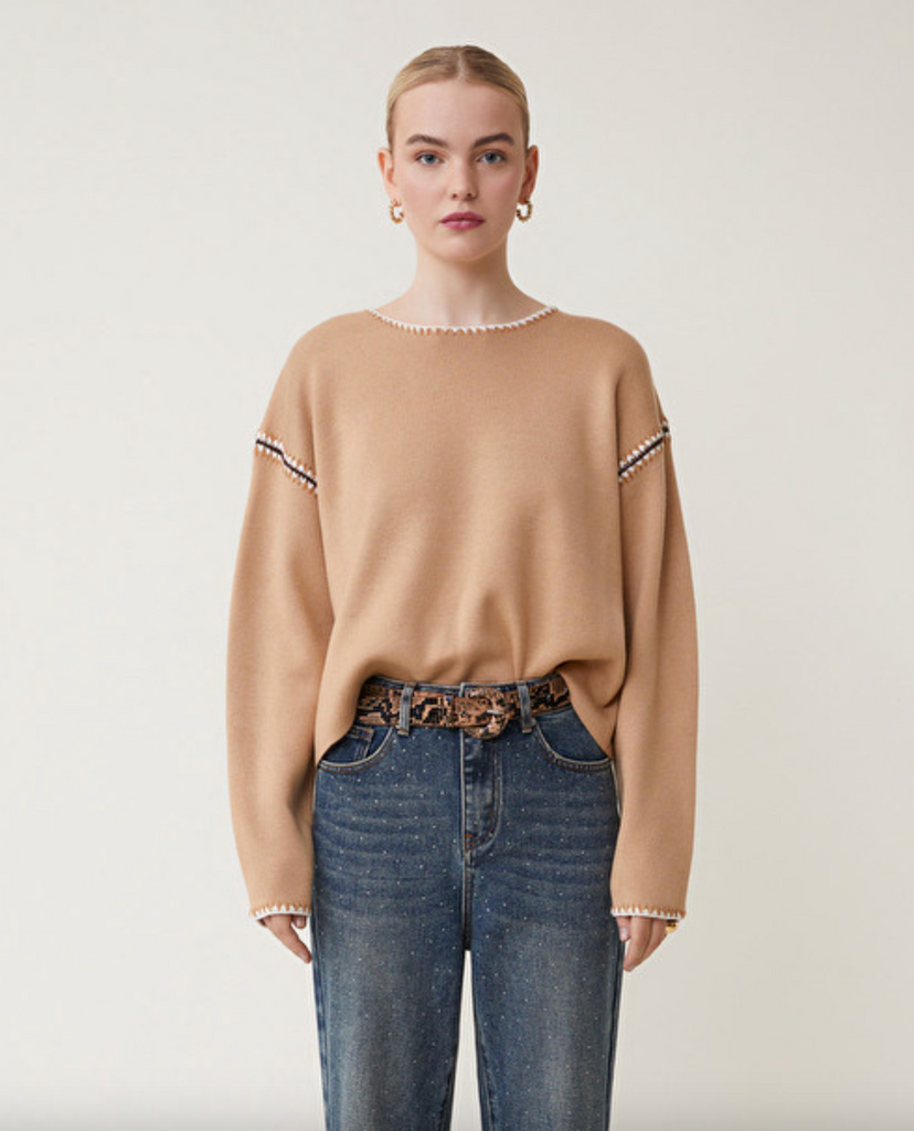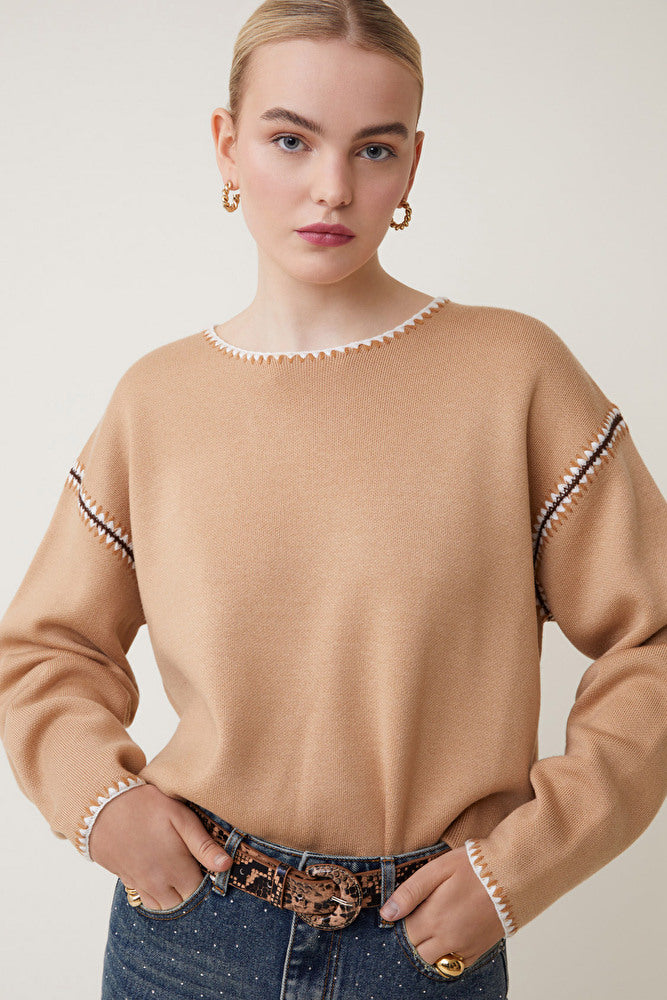 -Thin fancy sweater-Fancy embroidered on the collar and sleeves-Round collarFor a total look, match the Jicky pants with the Diana jacket.