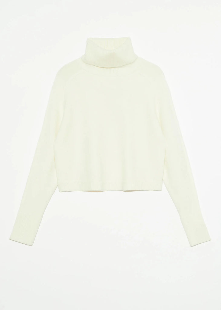 Viscose blend turtleneck sweater with long raglan sleeves. Crop length