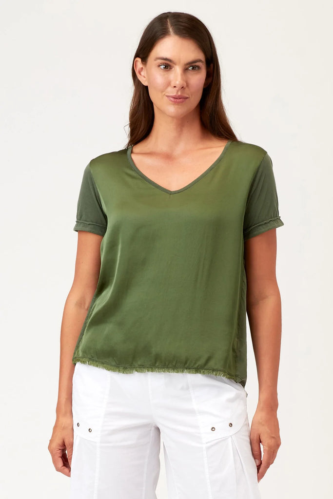 Pretty satin in the front, breatheable cotton jersey in the back; have a little dress up with your casual tee! Classic center back seaming and raw edges amp up the Renwick Tee.