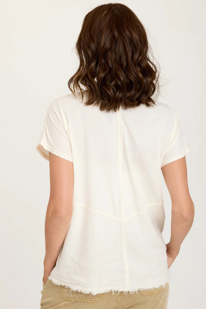 A simple shell top with a twist, or rather, a snap! Snap up side seams allow for you to rock Rian snapped up or free flowing. Contrasting jersey panel on the back yoke gives Rian extra easy breezy vibes.