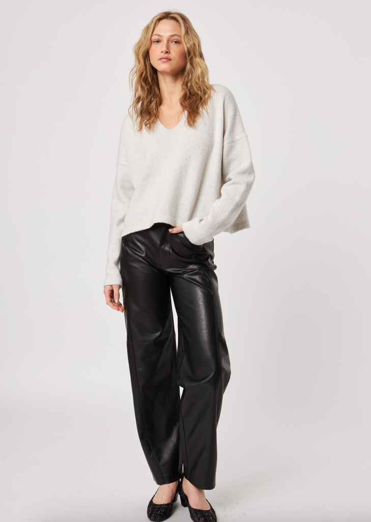 Add a little sparkle to your wardrobe with the Romy Sweater by John & Jenn. This classic v-neck knit features a subtle shimmer—perfect for elevating your everyday look and taking you straight into holiday party season.