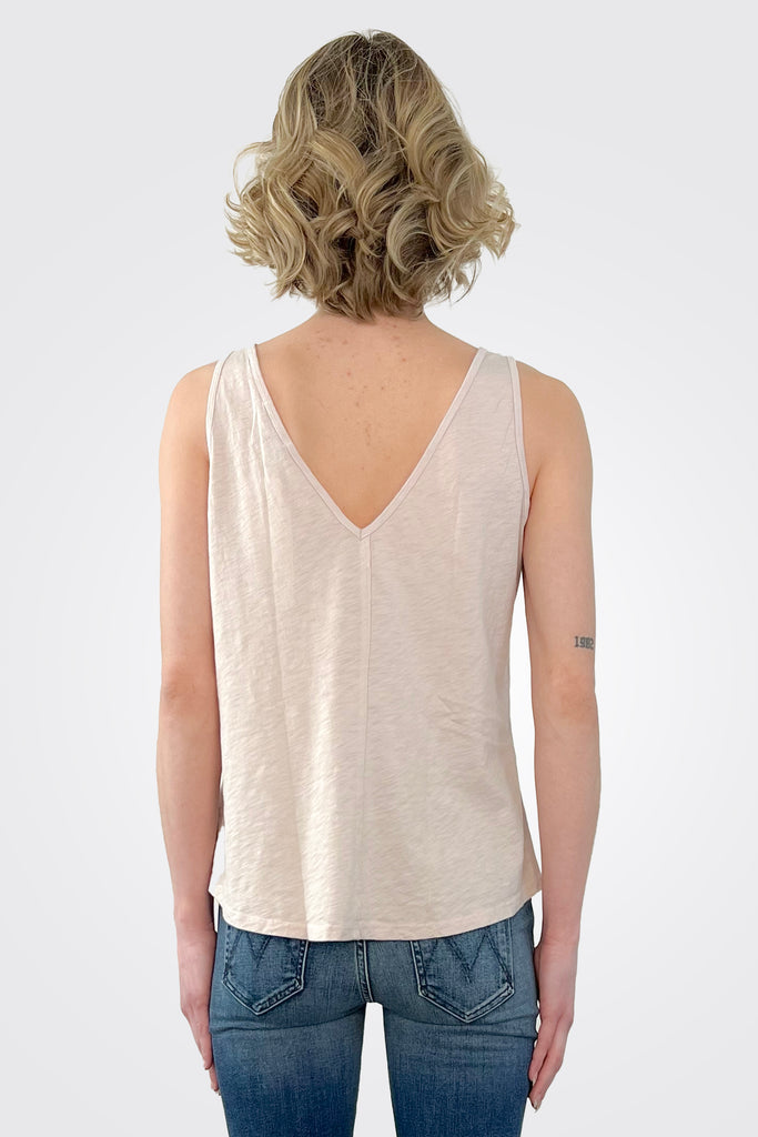 With a v-neck in the front and back, Scarlett is an easy fitting tank made from eco-friendly SUPIMA® Cotton Slub that is lightweight and breathable.