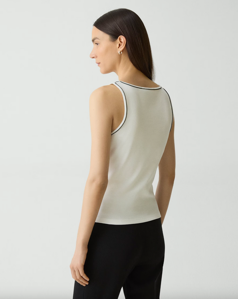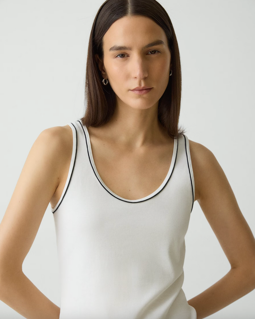 Clean and refined, this tank is tailored for a slim silhouette with a scoop neckline. Crafted for a smooth finish, this versatile style is crafted using a super-compact cotton rib with stretch. Made in Peru, using certified organic cotton.