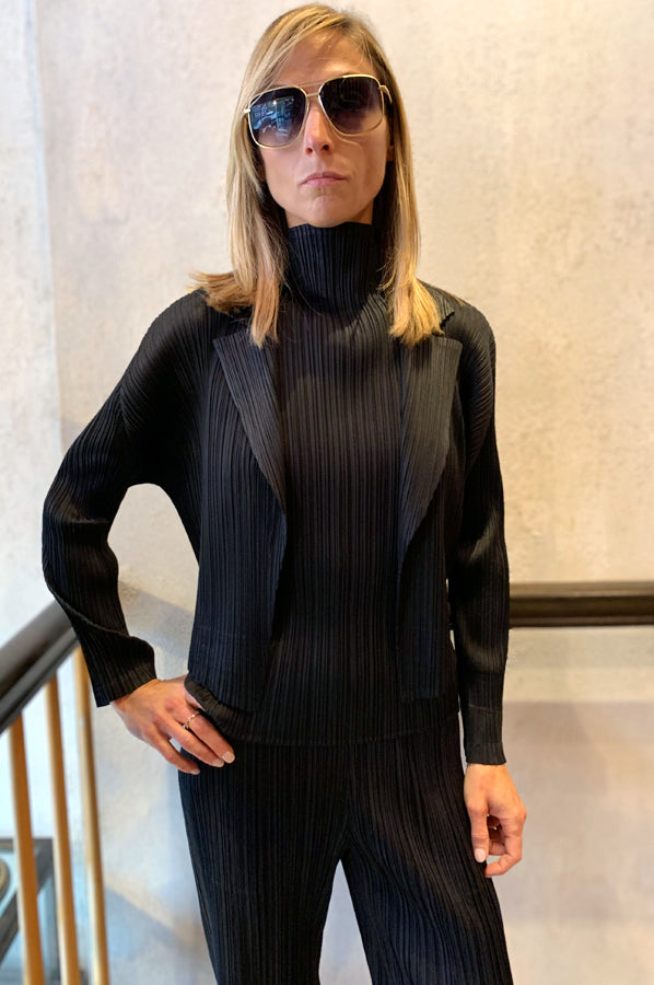 This tailored jacket features a slim, cropped shape with full-length sleeves. Notched lapels. Single button closure.