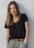 Deep V-Shirt Tail Tee is the perfect go-to item for any occasion. Its ultra-soft, 100% cotton slub-knit natural fabric makes it a best – seller year after year