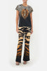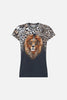 The Cool For Cats Slim Fit Round Neck T-Shirt greets the gaze with timeless leopard print wrapped in sensational hues of ivory and mocha alongside striking tiger eyes and an effortless midnight gradient. Crafted from breathable cotton, this statement tee features a classic round neckline, hand-embellished CAMILLA crystals, cropped sleeves and a relaxed slim-fit silhouette that meets ribbed accents at the neckline.