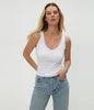 The perfect tank is here. This wear-with-everything, bra-friendly tank is designed from our super soft 1x1 cotton, so it feels great no matter what. The little details like a plunging neckline, back-seam detail and the perfect length, easily make this a foundational favorite. Under blazers, with denim, with knit pants or paired back to satin skirts, it’s a building block to style.