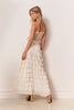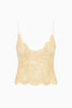 A true jewel of the collection, our Svetlana Top stuns in ornate Chantilly lace encrusted with delicate, artisanal pearls that trace every scalloped edge. This peplum cami hugs the waist before flaring softly at the high hip, balancing structure with romance. A deep open neckline and sheer finish below the lined bodice add just the right amount of femininity, while pearl-applied straps—adjustable with a dainty back loop—complete the dreamy, fashion-forward silhouette. Equal parts ethereal and statement-making, Svetlana is the definition of heirloom artistry.