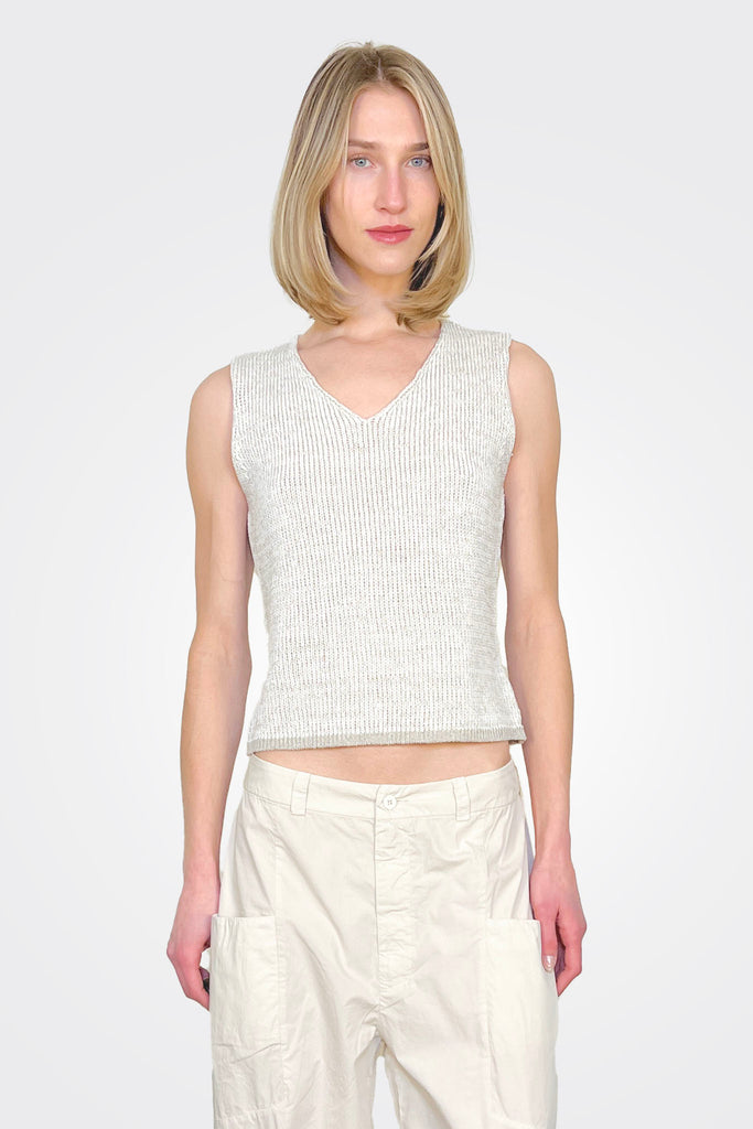 Melange look tank top in cotton-linen blend. Garment dyed.