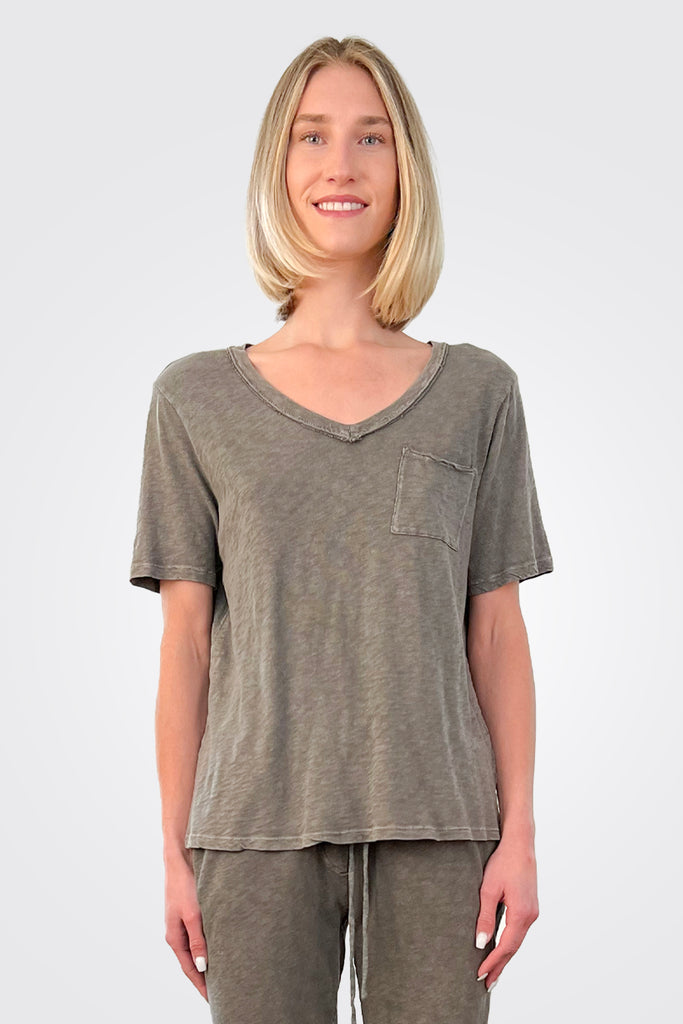V Neck Pocket Tee - Volcanic Glass
