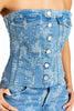 Denim Corset, a modern twist on a classic silhouette that exudes confidence and style. Crafted with precision and attention to detail, this versatile piece effortlessly elevates any outfit, making it a must-have addition to your wardrobe for both casual and dressy occasions.