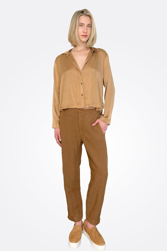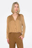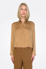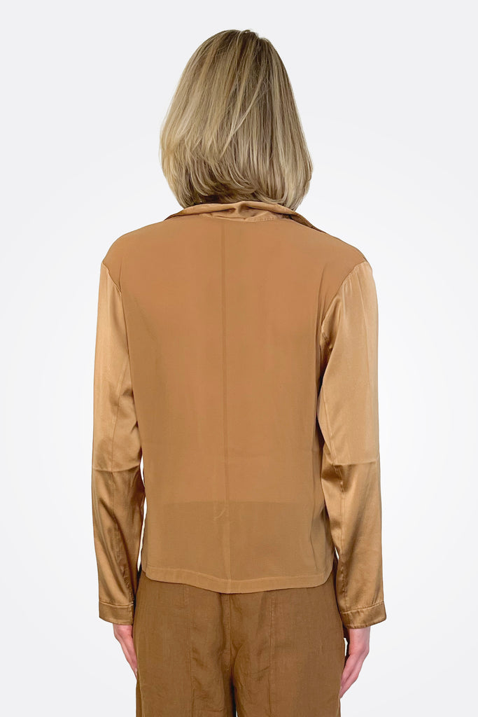 Long Sleeve Stretch Silk Satin Shirt - Rust