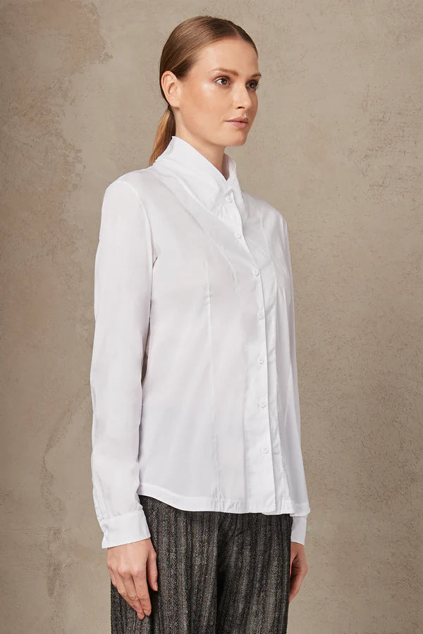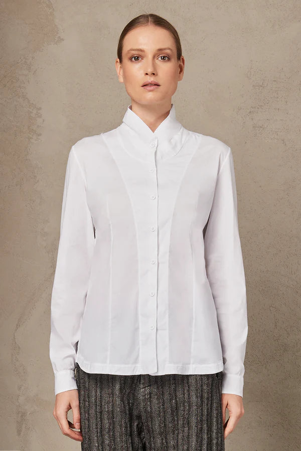 Strech Cotton High Neck Shirt - White